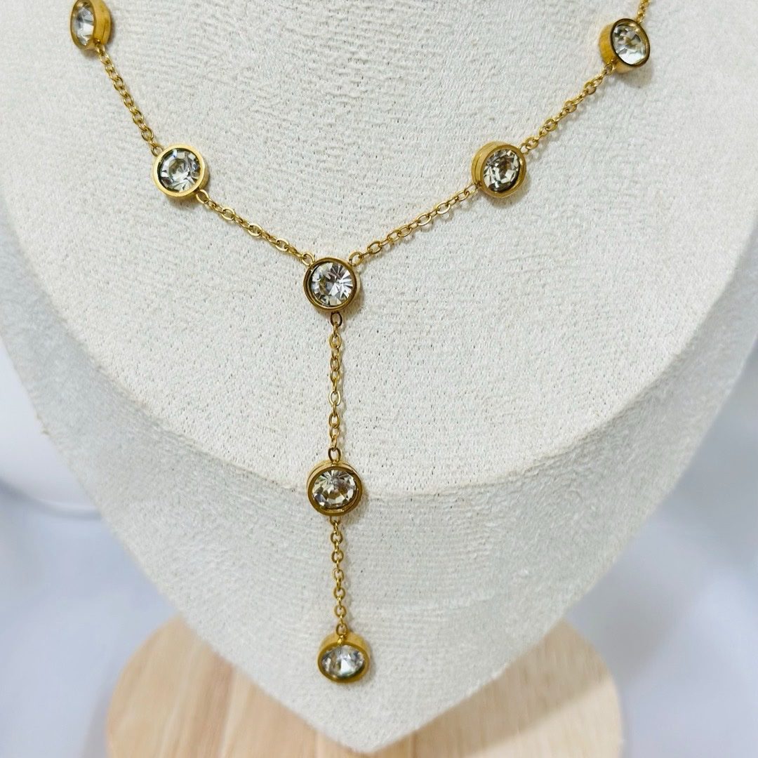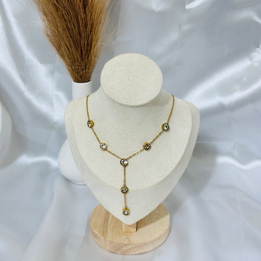 The Anti Tarnish Crystal Station Drop Necklace by Lahiya Jewels is a stunning anti-tarnish piece crafted in stainless steel with premium gold plating. Designed for everyday elegance — from casual to festive. Comes beautifully packaged, ready to gift. 🎁