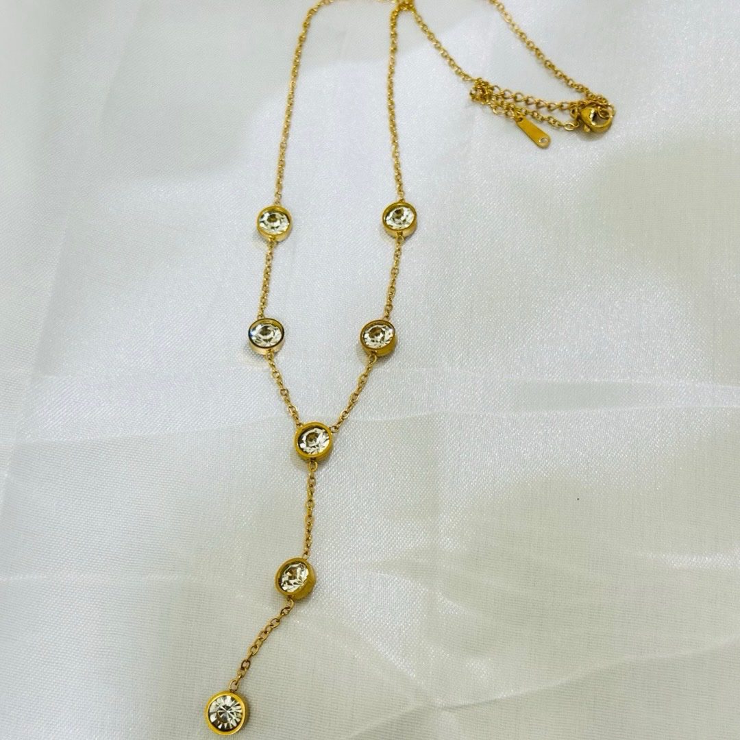 Anti Tarnish Crystal Station Drop Necklace