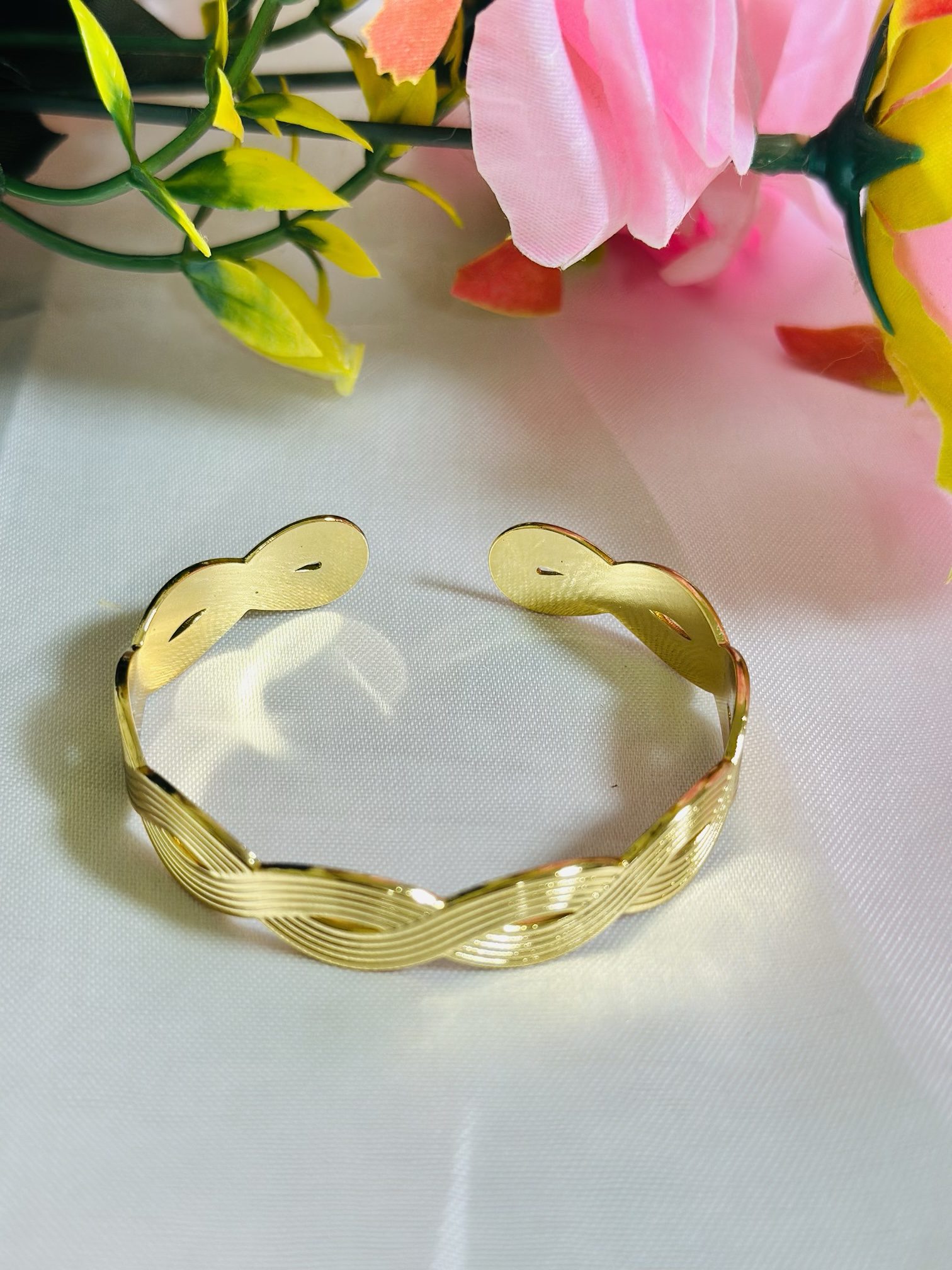 The Anti Tarnish Wave Texture Cuff Bangle Set (With Ring Combo) by Lahiya Jewels is a stunning anti-tarnish piece crafted in stainless steel with premium gold plating. Designed for everyday elegance — from casual to festive. Comes beautifully packaged, ready to gift. 🎁