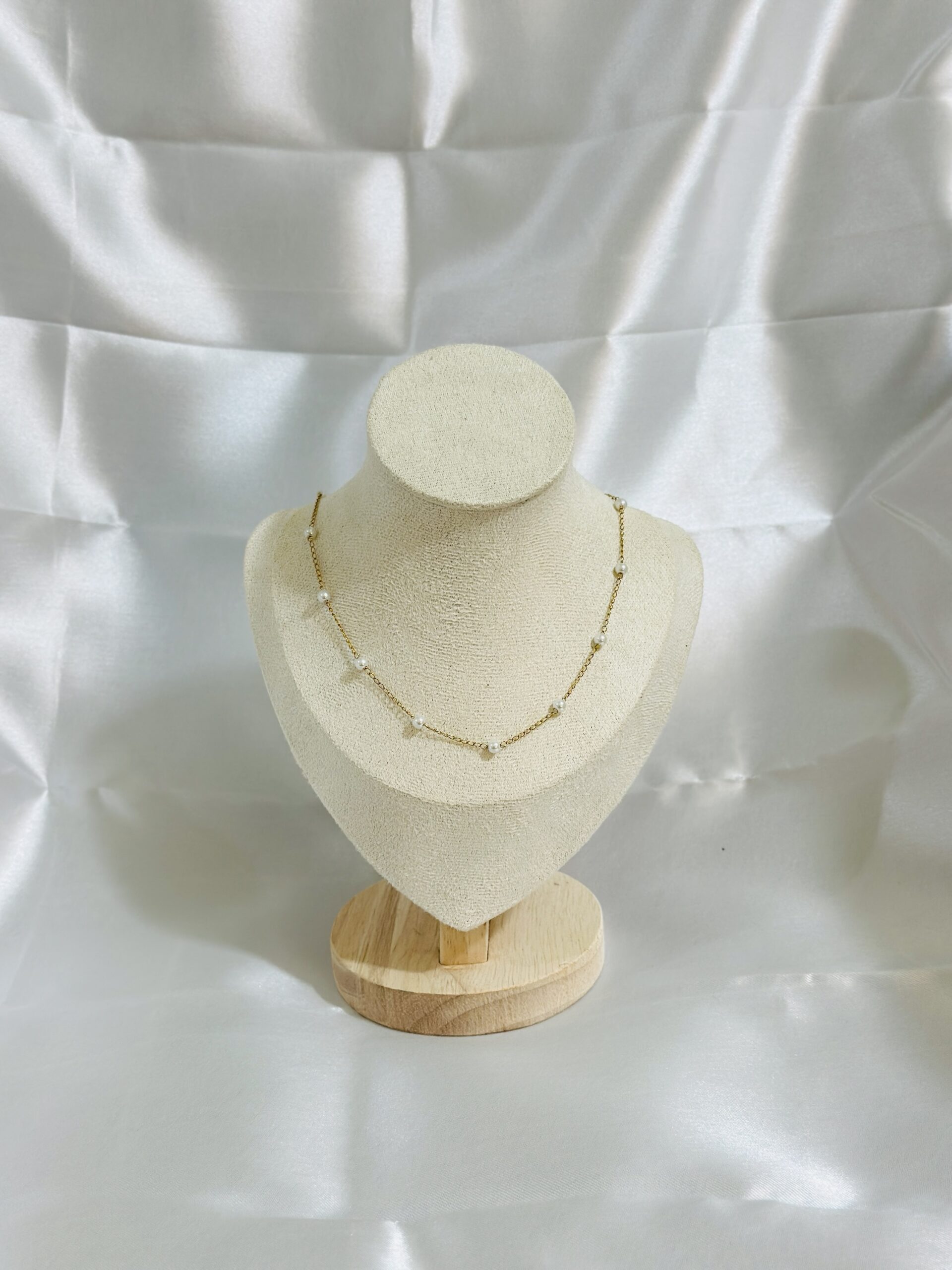 Graceful anti-tarnish pearl necklace for women that exudes timeless elegance and sophistication. This stunning necklace features lustrous pearl-like beads carefully crafted to enhance your beauty. Made with anti-tarnish material ensuring the necklace retains its gorgeous appearance wash after wash. Perfect for weddings, parties, or gifting to someone who appreciates fine jewellery.